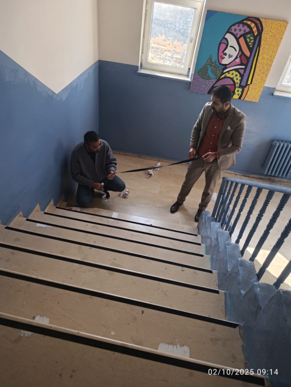 Okulumuzun iç merdivenlerine kaymaz bant yapıştırıldı.Kazaların önlenmesi ve zararlarının azaltılması amacıyla yapılması gereken çalışmaların, planlanması, yönlendirilmesi, koordine edilmesi, desteklenmesi ve uygulanabilmesi için değerlendirme yapıldı.